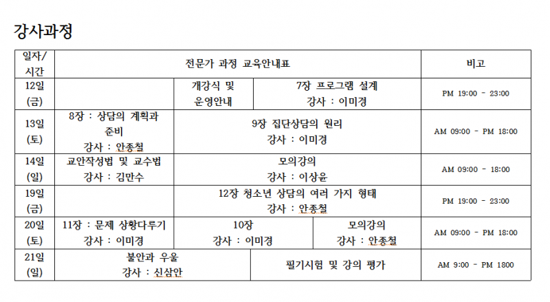 정신건강상담사 자격연수 참가에 감사드립니다.